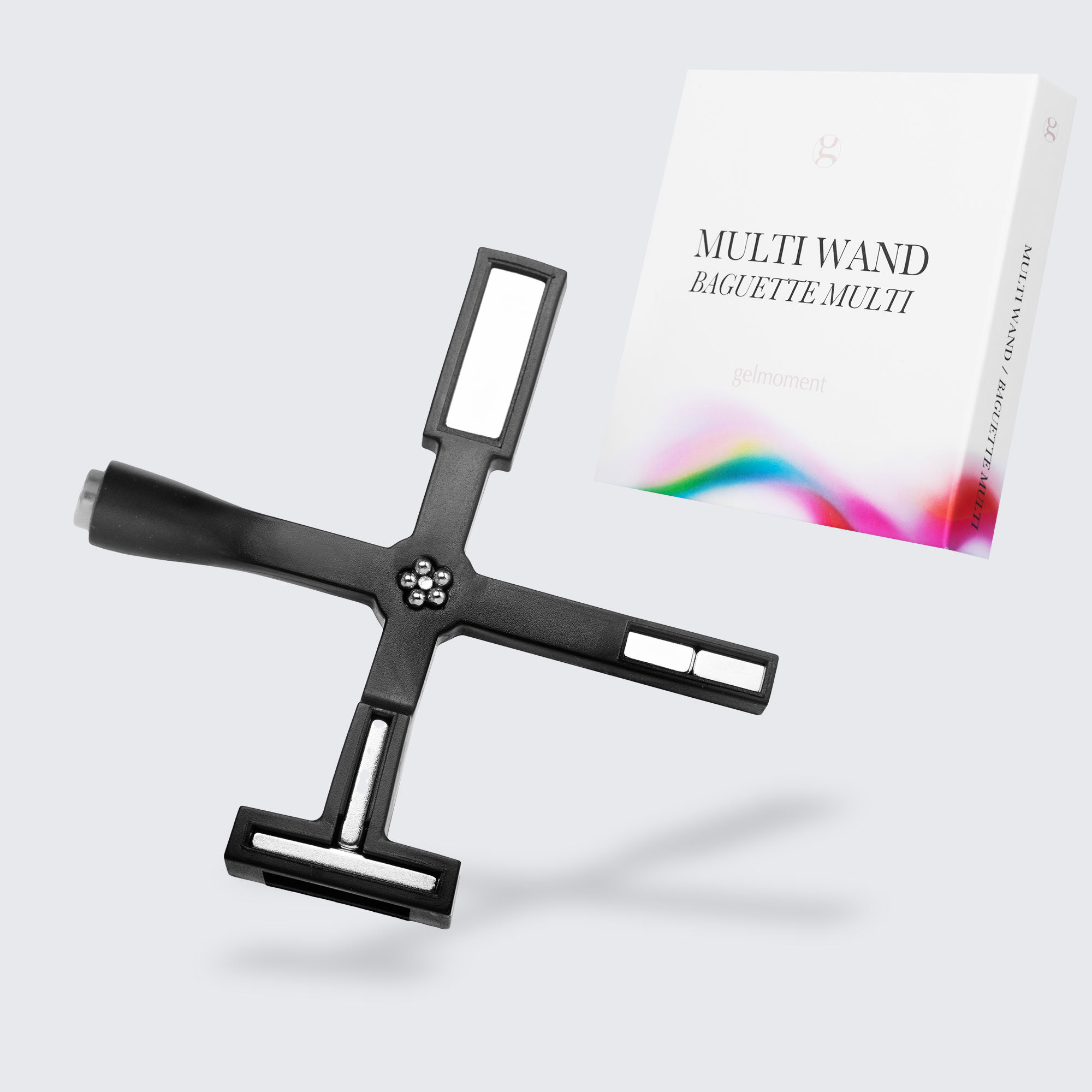 X-shaped magnetic wand featuring FIVE (5) different shapes to create stunning patterns and designs on your nails effortlessly. These include a circle, a T-shape, a large rectangle, a small double rectangle, and a flower.